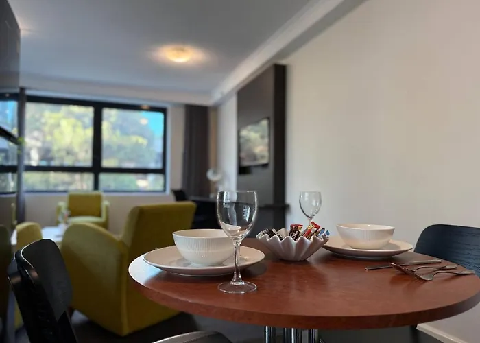 Die 56 m² großen One Bedroom Hospitality Suite Sydney liegt nur 550 Meter vom Bahnhof Parramatta und in nur 9 Gehminuten Entfernung vom James Ruse Reserve. Die Gäste dieses Apartments im Stadtteil Parramatta von Sydney können von einem Whirlpool profitieren.